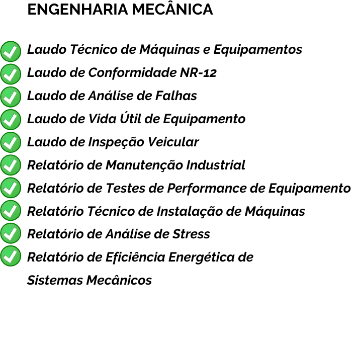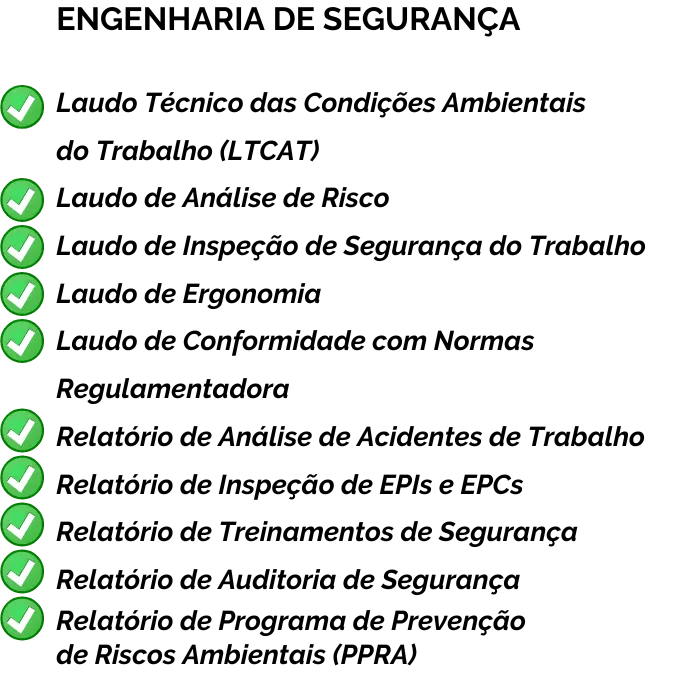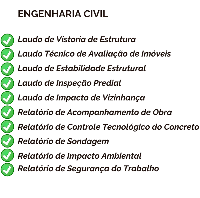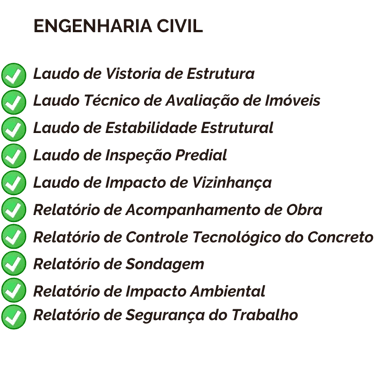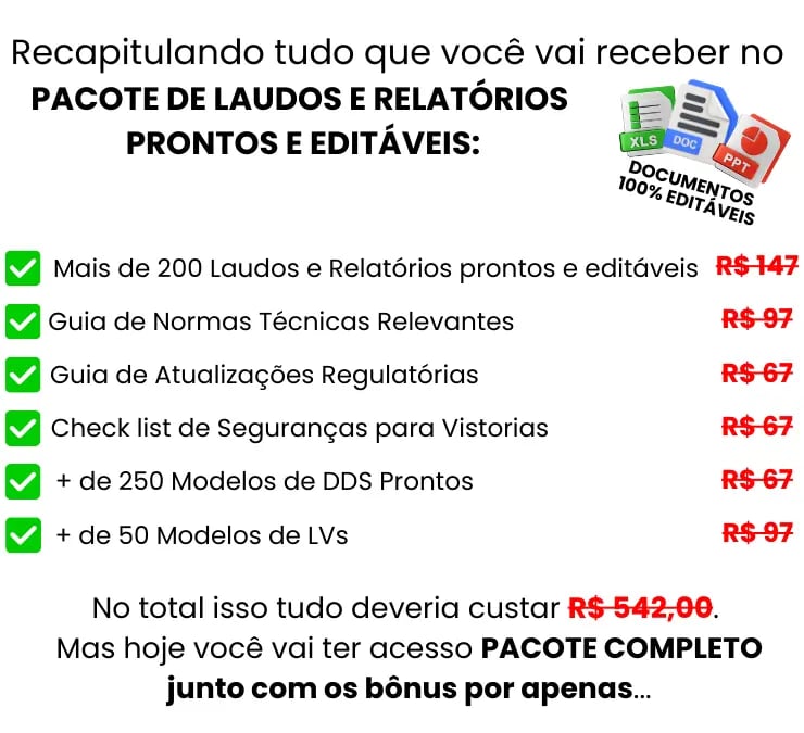 E ainda não acabou. Veja o que mais você vai receber no PACOTE DE LAUDOS E RELATÓRIOS TÉCNICOS